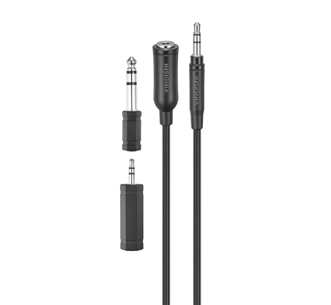 Branchez votre casque d'écoute sur divers appareils et lecteurs avec cet ensemble d'extension d'Insignia. Il comprend un câble audio avec une extrémité mâle de 3,5 mm et une extrémité femelle de 3,5 mm, un adaptateur mâle de 1/4 po à femelle de 3,5 mm ainsi qu'un adaptateur femelle de 3,5 mm à mâle de 1/4 po. La longueur de 3,66 m (12 pi) vous permet d'atteindre facilement les appareils qui ne bougent pas.