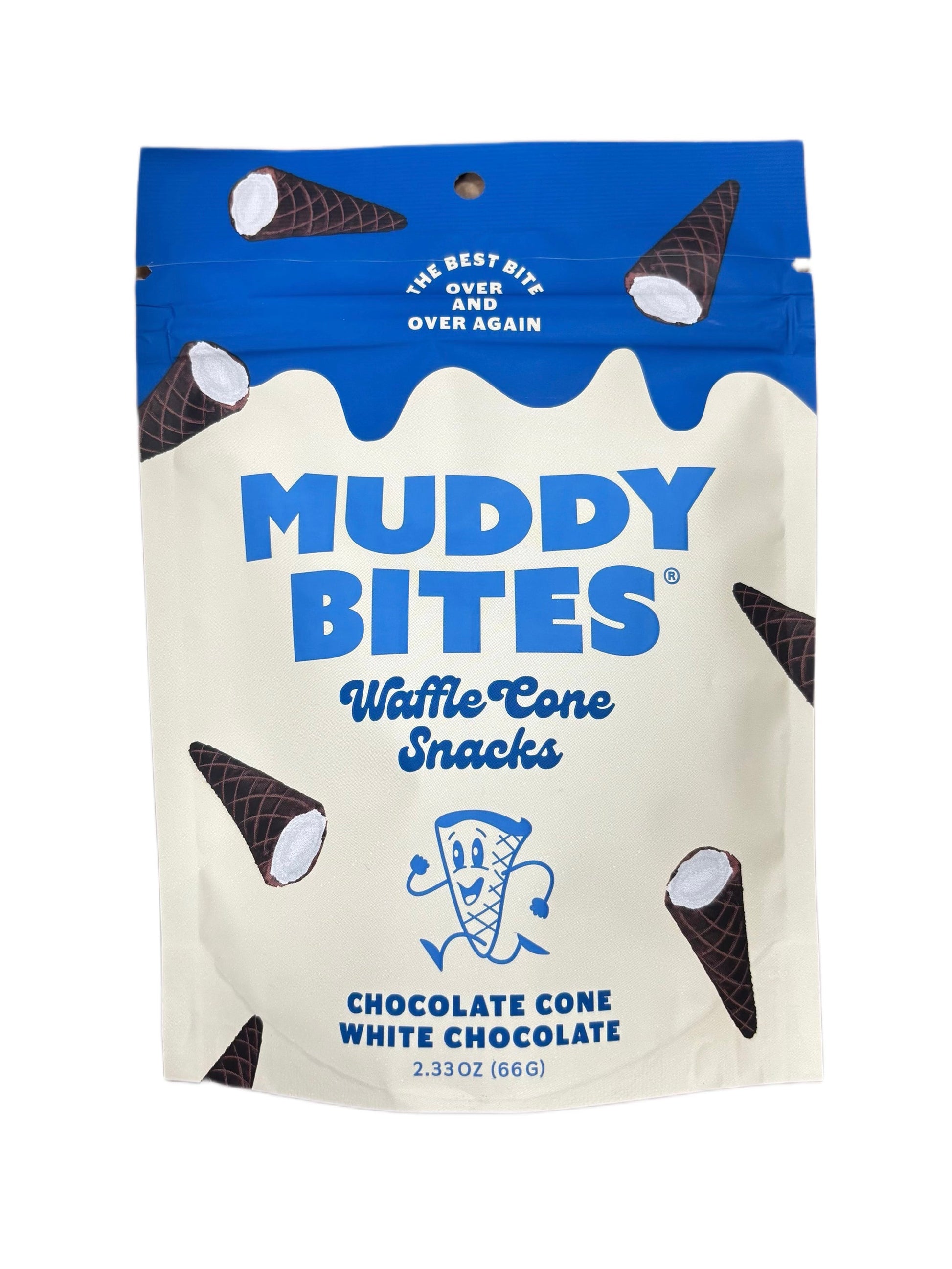 Experience the heavenly combination of crunchy waffle cone and smooth white chocolate with Muddy Bites Waffle Cone Snacks. Satisfy your sweet cravings today!