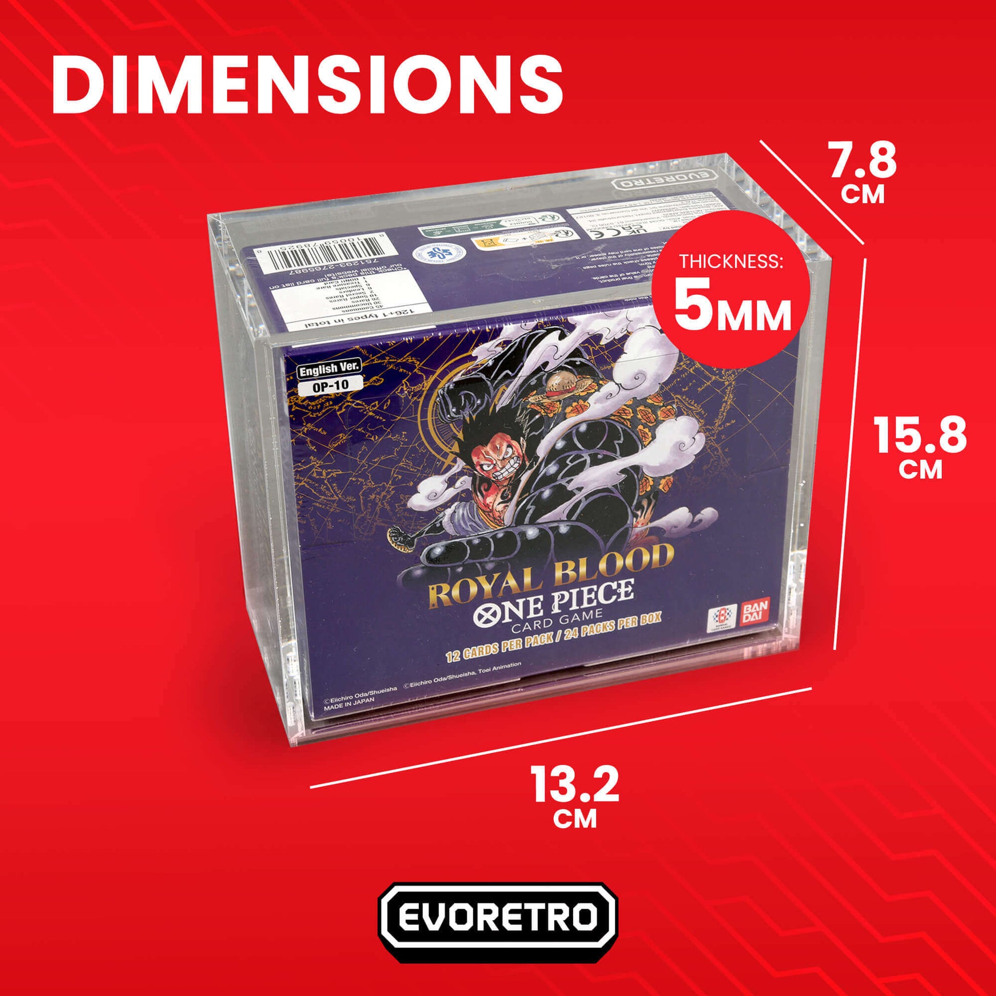 Keep your One Piece treasures sealed and stunning with the EVORETRO Acrylic Display Box – the ultimate hard protector for your Bandai One Piece Trading Card Game (TCG) Booster Boxes from OPP-4 to OPP-6 (English edition). Whether you're a collector or reseller, this transparent storage case is designed for both display and defense.